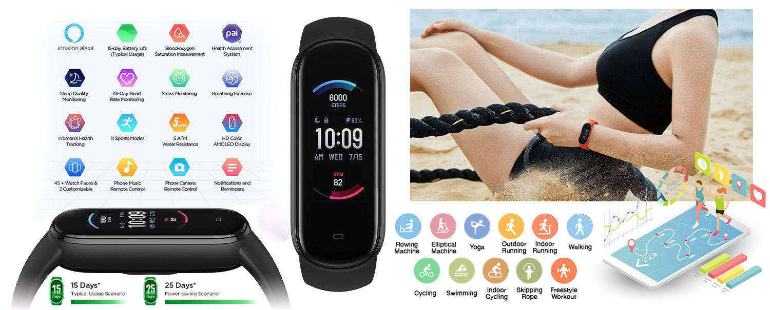 An easy-to-use activity fitness tracker with 11 built-in sports modes, enabling you to record the distance, speed, heart rate changes, calories burned, and other data during your workouts.